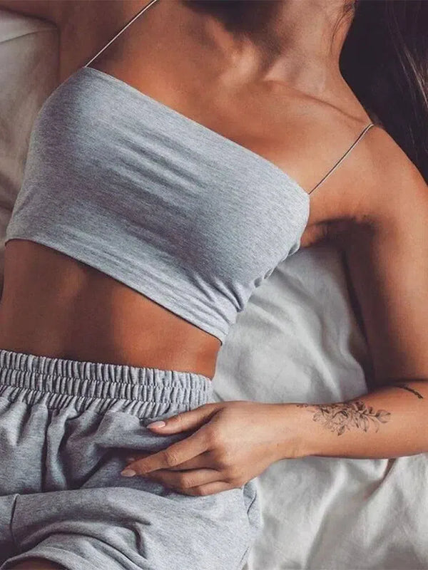 2024 nueva moda mujer Spaghetti Strap Crop Top ajustado
