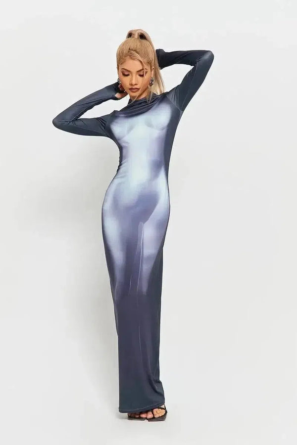 3D Body Printing Super Vestido de fiesta de manga larga Body Robe