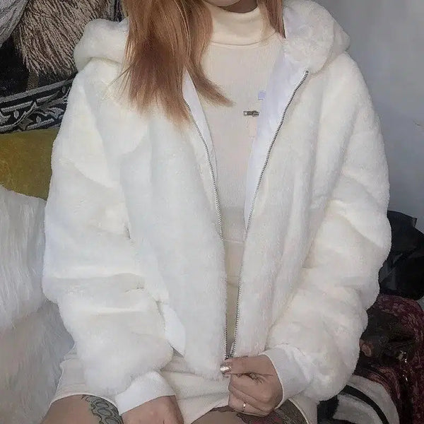Descripción del producto: Abrigo corto casual de felpa con capucha para mujer