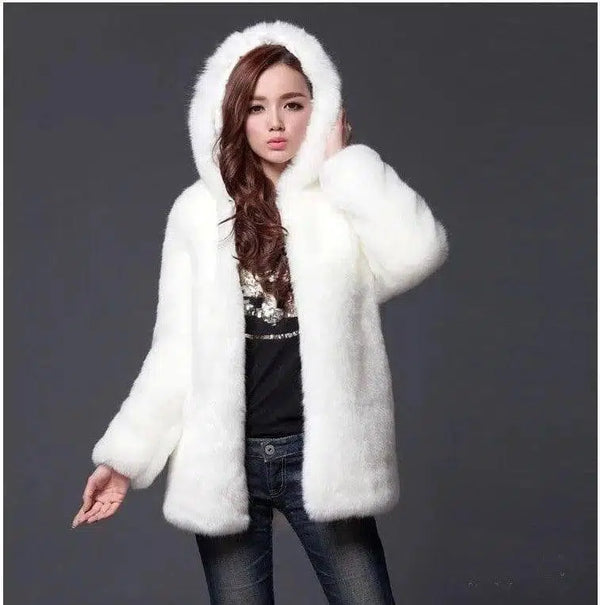 Abrigo con capucha de piel sintética para mujer abrigo largo medio