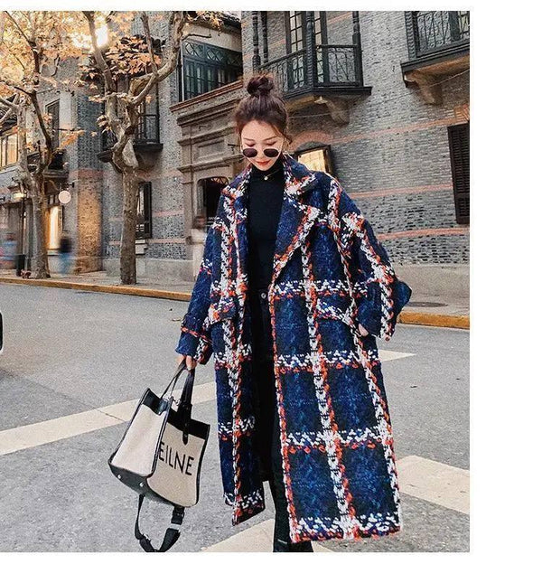 Contrastando Temperamento Plaid Traje Cuello Loose Straight