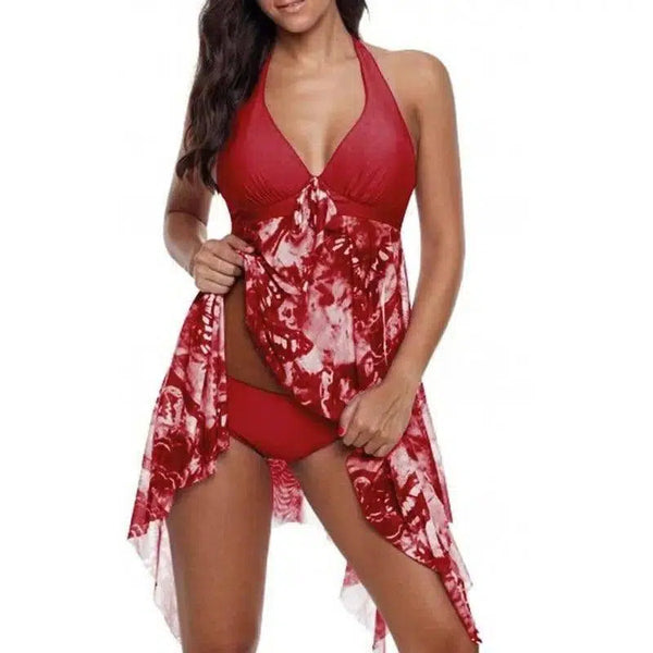 Descripción del producto: Bikini dobladillo irregular split traje de baño floral