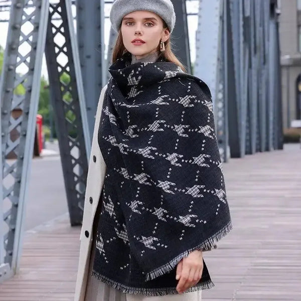 Descripción del producto: Bufanda cálida con estampado de pata de gallo para mujer