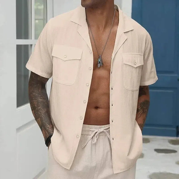 Camisa de bolsillo suelta de color sólido para hombre