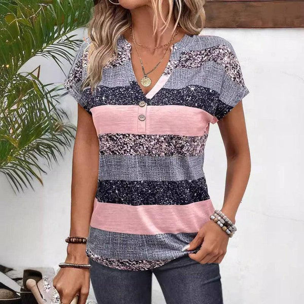 Verano europeo y americano Manga corta Rayas Con cuello en V 3D