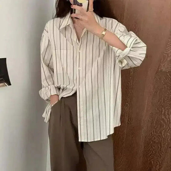 Camisa informal abotonada de rayas para mujer