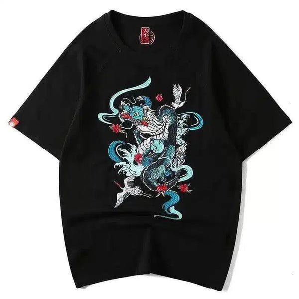 Corte: Corte normal - Diseño: Gráfico de dragón prominente con elementos florales en la parte delantera