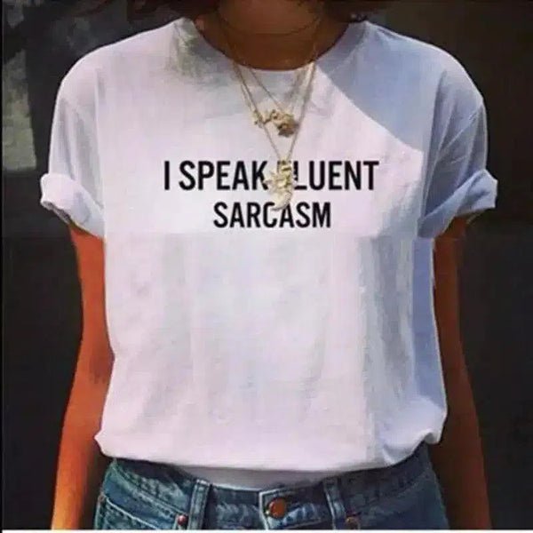 Estampado atrevido: Haz una declaración con el juguetón estampado "I SPEAK FLUENT SARCASM", un iniciador de conversación y un escaparate de tu ingeniosa personalidad.