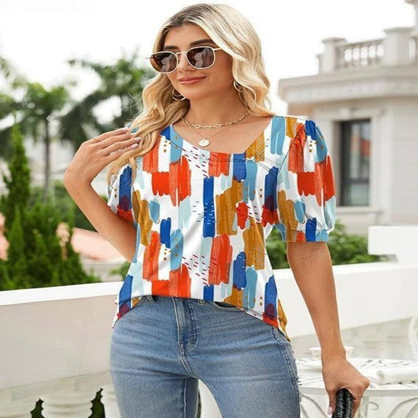 Mujer Manga corta Irregular Manga abullonada Suelta Floral