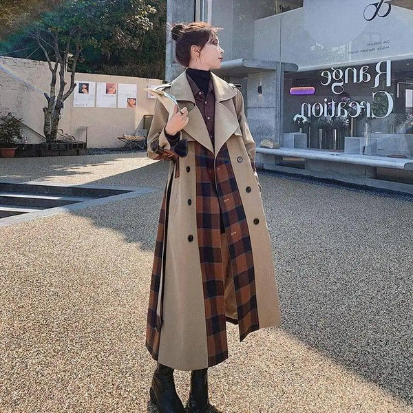Descripción del producto: Plaid Stitching Khaki Windbreaker Women's Small Jacket