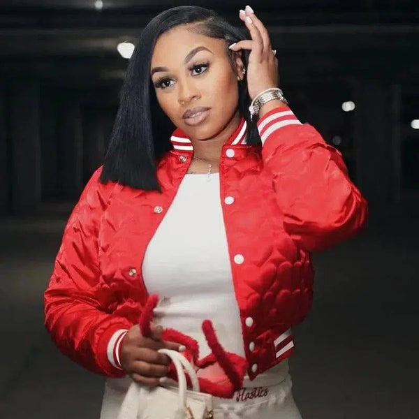 Chaqueta corta de algodón bordada con letras de moda para mujer