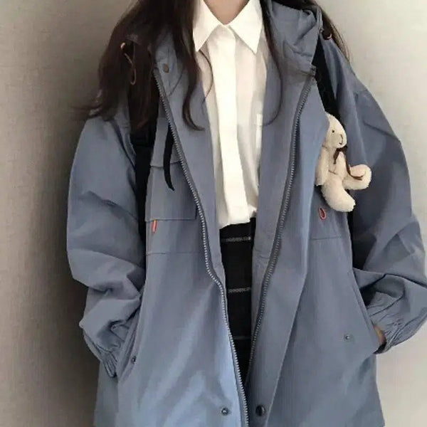 - Estilo de cuello/hombros: Con capucha y cremallera frontal