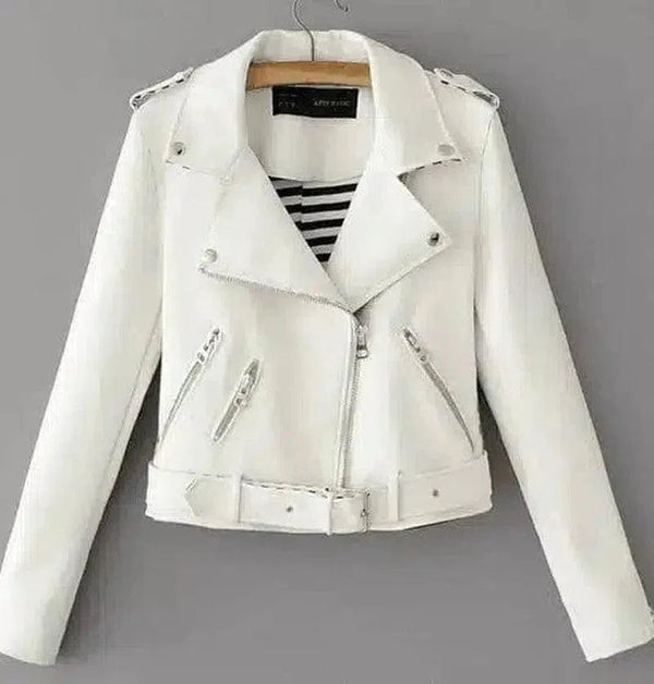 Incorpora esta chaqueta de moto de piel sintética blanca a tu vestuario para añadir un toque de elegancia y