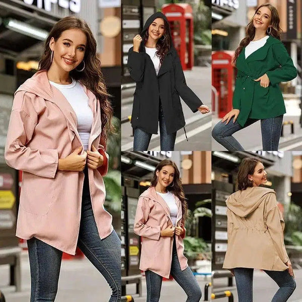 Gabardina de color liso y largo medio con capucha