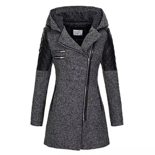 - Estilo de escote/hombros: Cremallera asimétrica con cuello alto