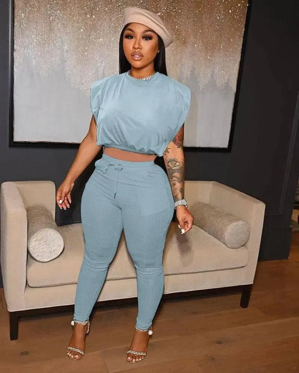 Puro color ajustado sin mangas acolchado hombro camiseta de la cadena