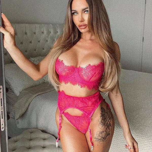 Lencería femenina de encaje bordado con perlas Tres