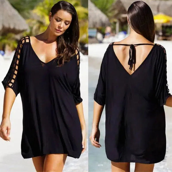 Verano Plus Size M to 3XL Cover Up Mujeres Traje de baño Blusas de playa Mujeres Bikini Beach Wear Cover-Up Vestido Negro