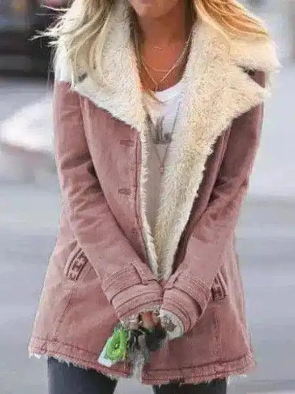 - Cuello de solapa con forro de sherpa.
