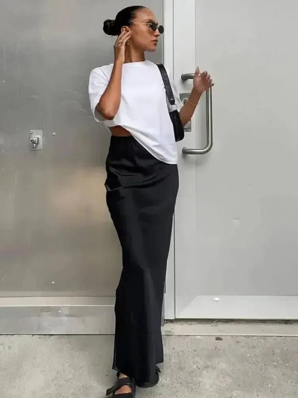 - Tipo de producto: Falda slim de satén para mujer.