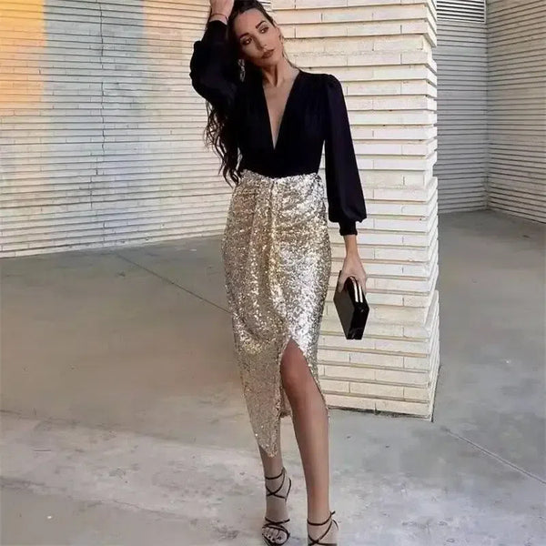 Estilo europeo y americano plisado de cintura alta de adelgazamiento