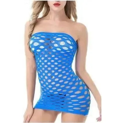 Vestido corto de red con agujero en la cadera para lencería femenina