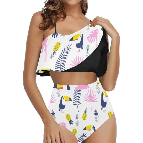 99DIY Mujeres de dos piezas de cintura alta volante Bikini Ruffle