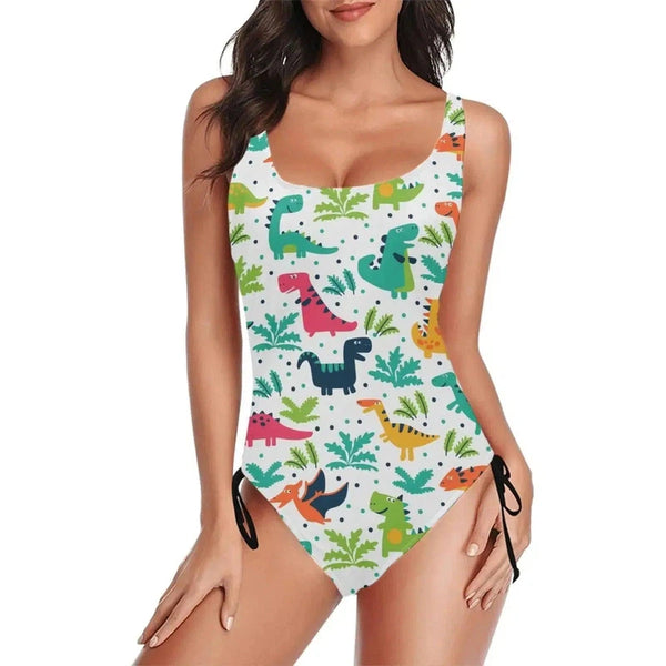 99diy Traje de baño de una pieza con estampado personalizado y cordón lateral