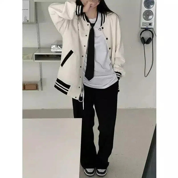 Chaqueta Varsity con puños a rayas y cierre a presión