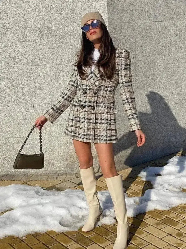 - Tipo de prenda: Mini vestido estilo blazer de cuadros.
