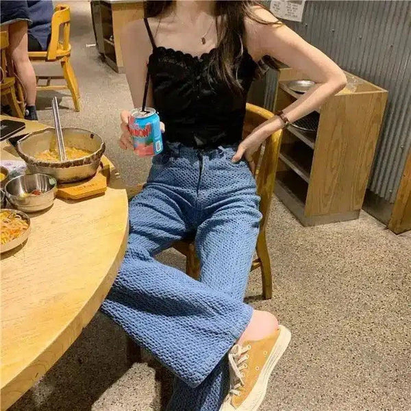 Pantalón casual de cintura alta con textura para mujer