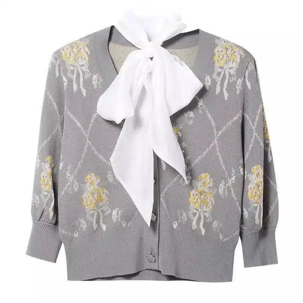 Cárdigan de flores para mujer con pajarita