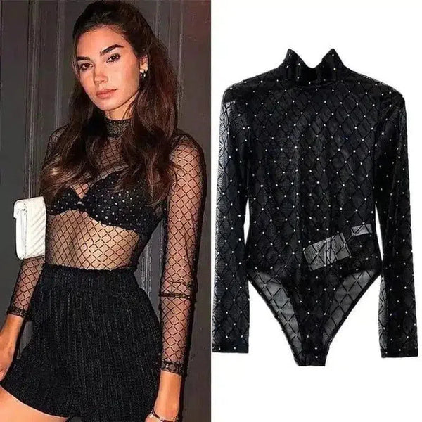 Body de malla adornado con mangas largas