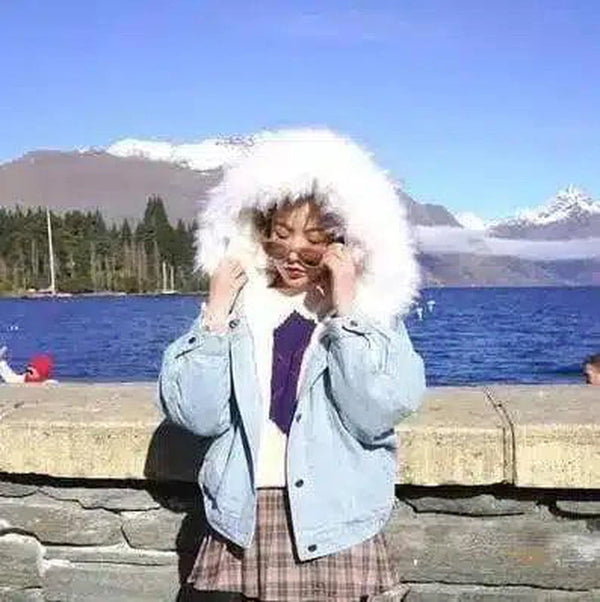 Cazadora vaquera de cordero con capucha y terciopelo