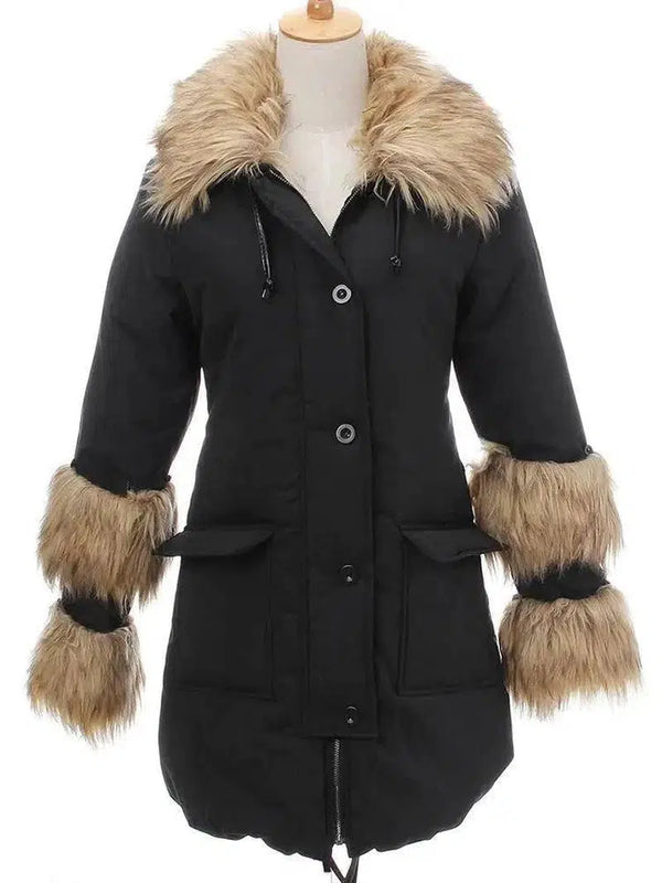 Casual Mujeres Con Capucha Larga Outwear Cuello De Piel Manga Larga