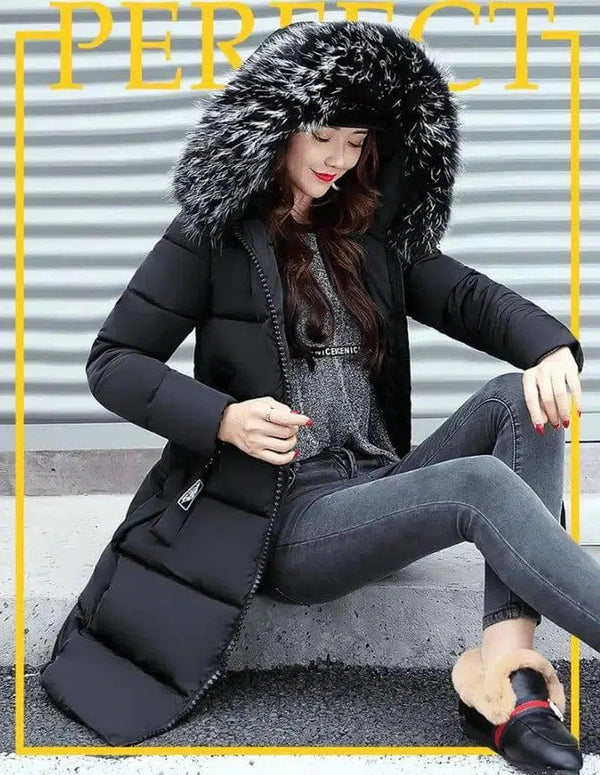 Elegancia invernal: Chaqueta acolchada chic con capucha de piel coreana