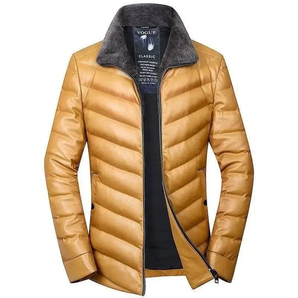 Cuello de lana de los hombres jóvenes de cuero chaqueta de pluma corta caliente hacia abajo