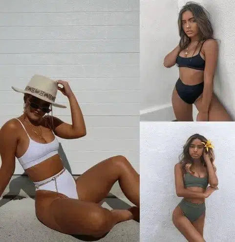Placa dividida multicolor de color sólido con cintura alta delgada