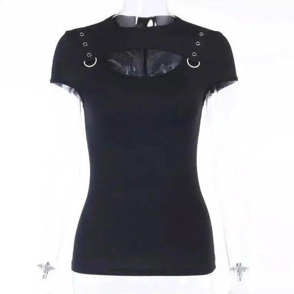 Camiseta de mujer de estilo gótico con detalles metálicos