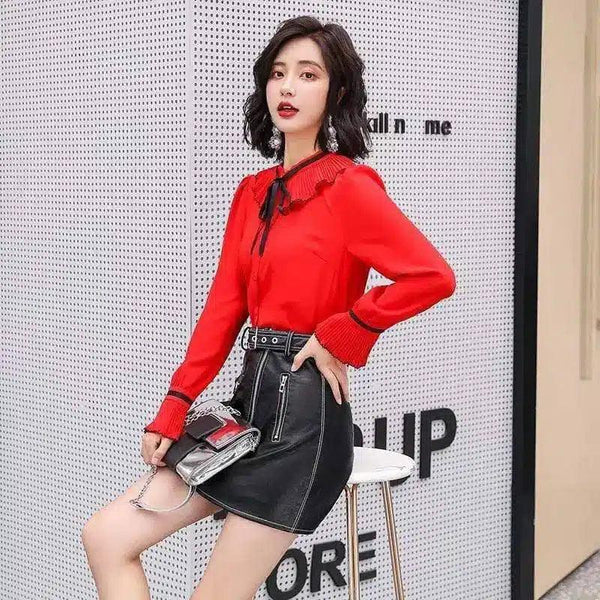 - Cuello: Cuello clásico con detalle de lazo