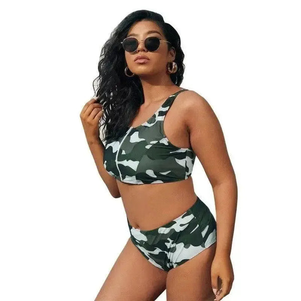 Moda Tallas Grandes Estampado Camuflaje Con Cremallera