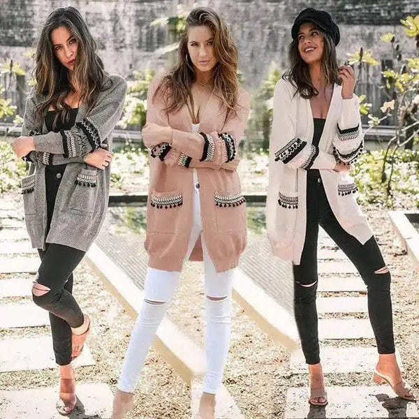 Chaqueta casual de punto con bolsillos para mujer