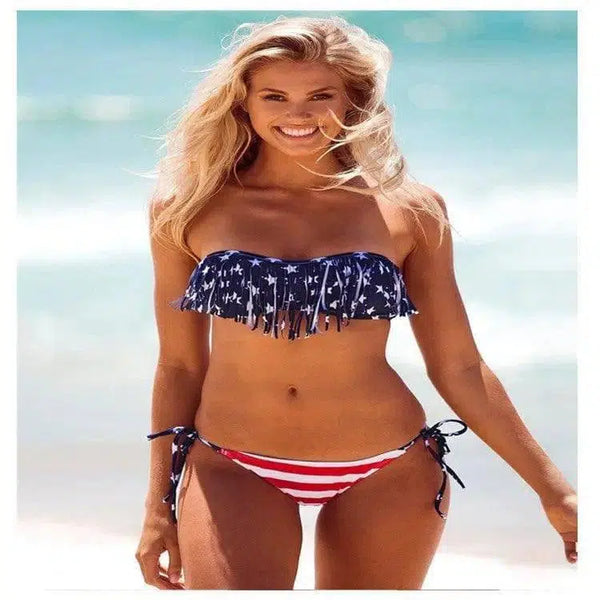 Descripción del producto: Bikini con estampado de bandera de borlas