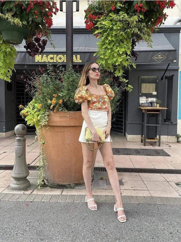 - Tipo de prenda: Top floral de mangas abullonadas .