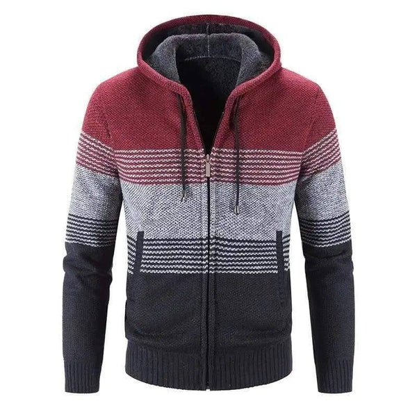 Hombres con capucha raya abrigo Cardigan Hombre cremallera gruesa lana