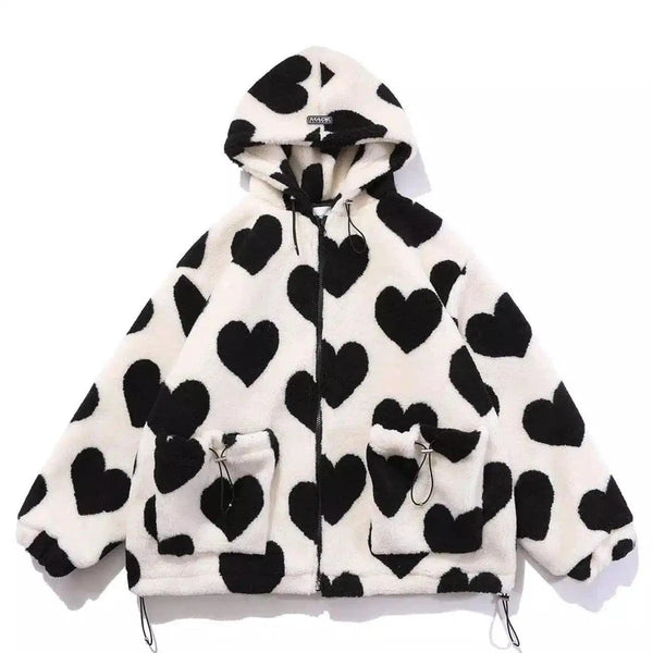 - Diseño: Atrevido estampado de corazones negros sobre fondo crema