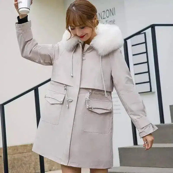 - Acogedor cuello de piel sintética: Presenta un cuello de piel sintética afelpada que añade calidez y una estética chic, perfecta para los días fríos.