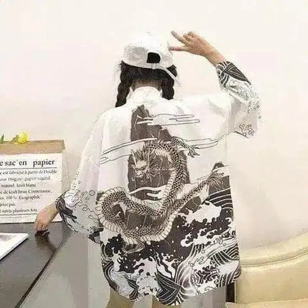 Corte: Corte relajado con hombros caídos - Estampado: Estampado gráfico de inspiración tradicional en la espalda
