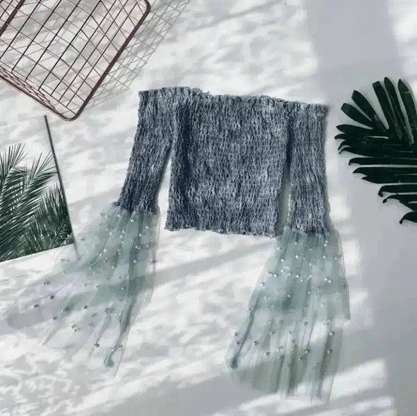 - Estilo de escote u hombros: Escote off-shoulder recto y elástico