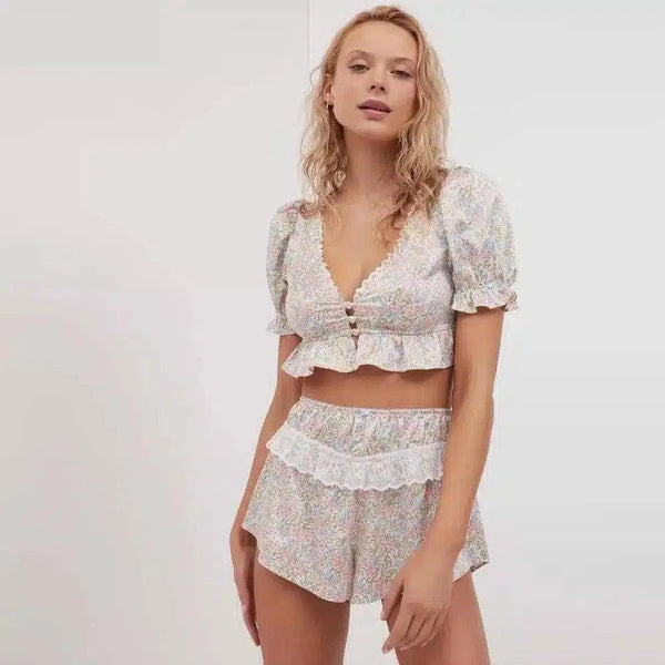 Conjunto de top y pantalón corto con volante floral para mujer